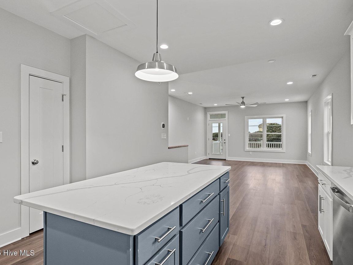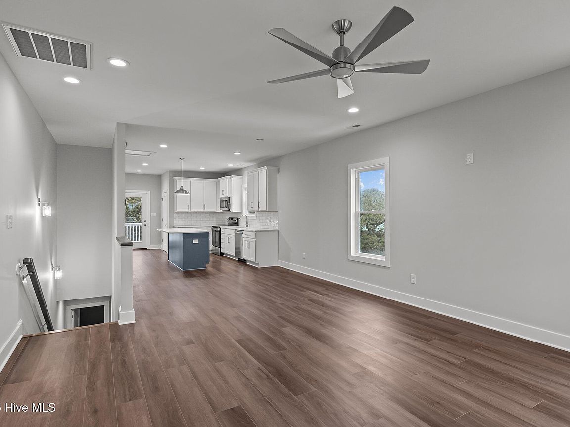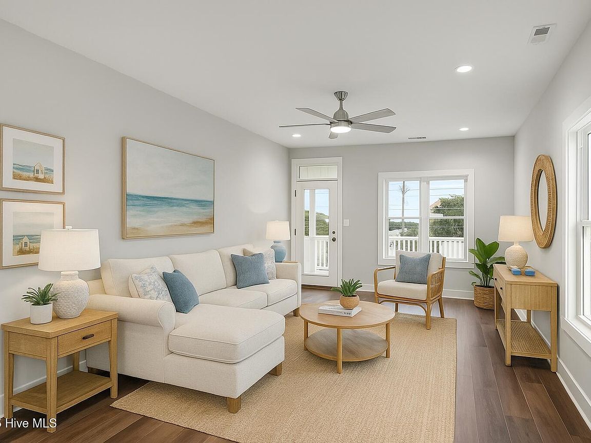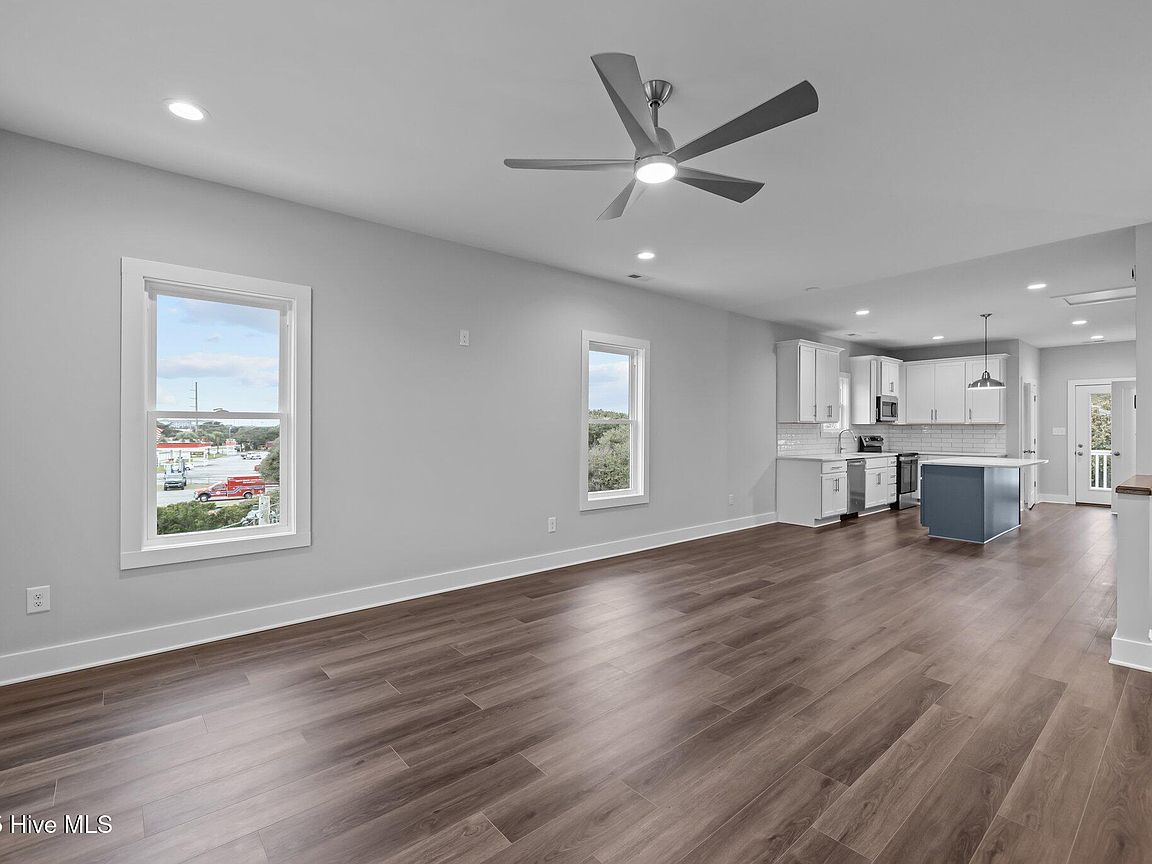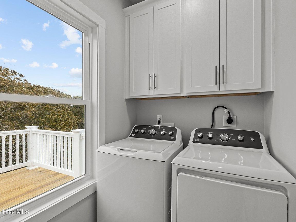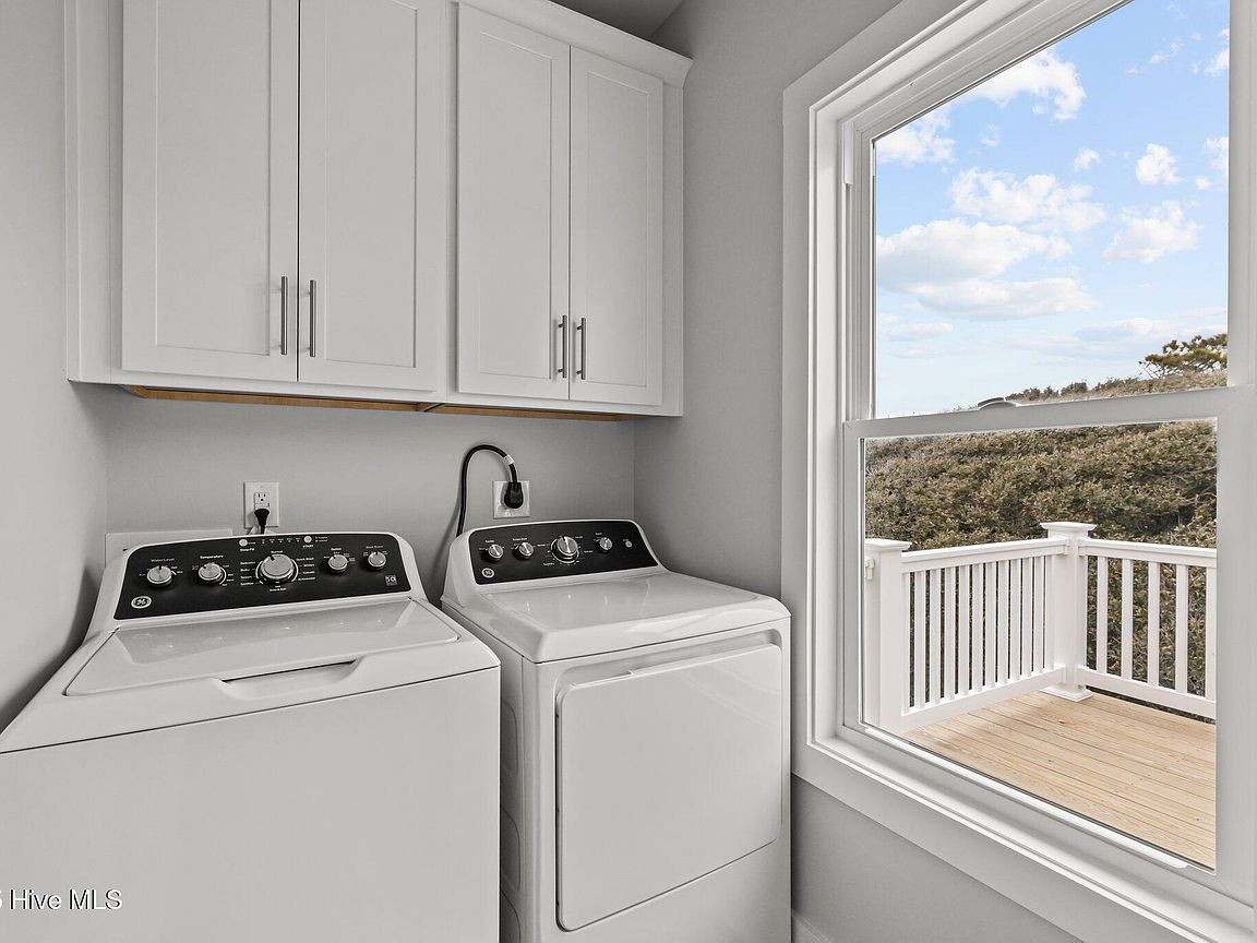 Three levels of modern coastal living Private garage with half bath and mini split perfect for a game room, storage, or flexible living space Third floor showcases an open-concept living area with covered front deck, dining space, and a sleek kitchen featuring quartz countertops and stainless steel appliances. Convenient laundry area and rear deck for additional outdoor enjoyment. Second floor includes an owner's suite, guest bedroom, additional room ideal for an office or flex space, plus covered front and back decks for relaxation and entertaining. High-end finishes throughout, including LVP flooring, quartz surfaces, and new washer and dryer. Both units (A&B) sit on a 0.38-acre lot in the heart of Salter Path, offering easy access to area beaches, dining, and coastal attractions With its modern design, durable coastal construction, and versatile layout, this half duplex provides an incredible opportunity for investment, personal use, or a combination of both. Listing is for unit B (EastSide). Property would have to be divided and given new parcel numbers if not sold together.