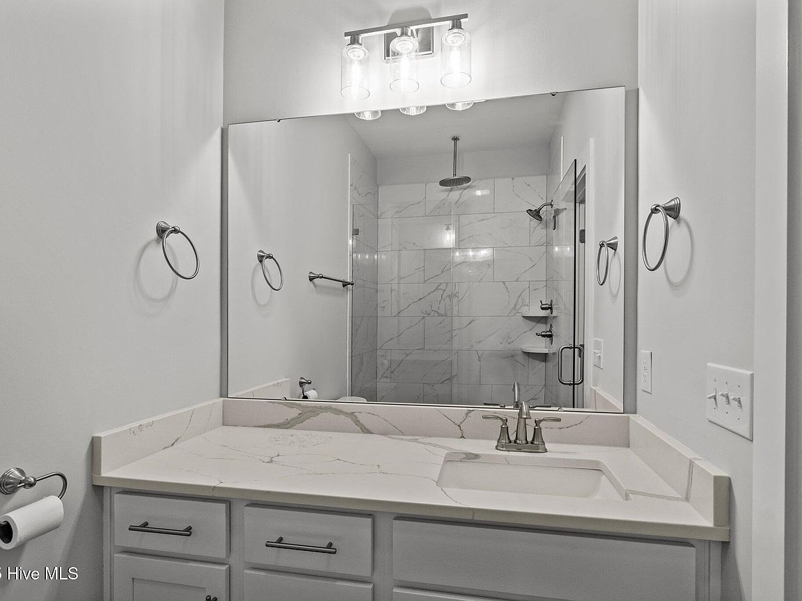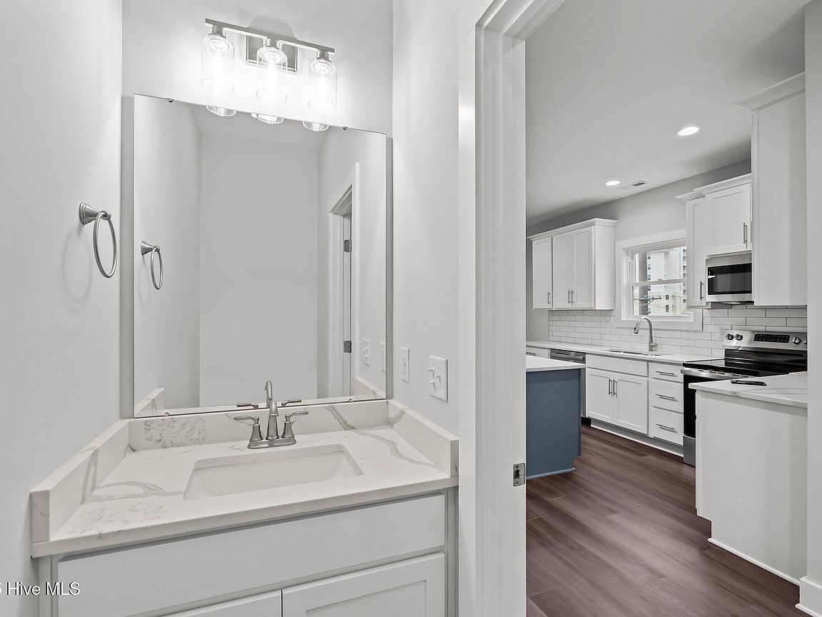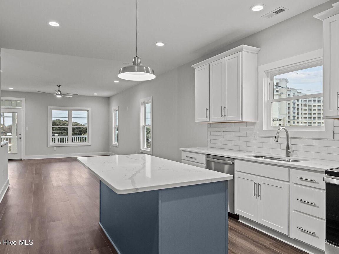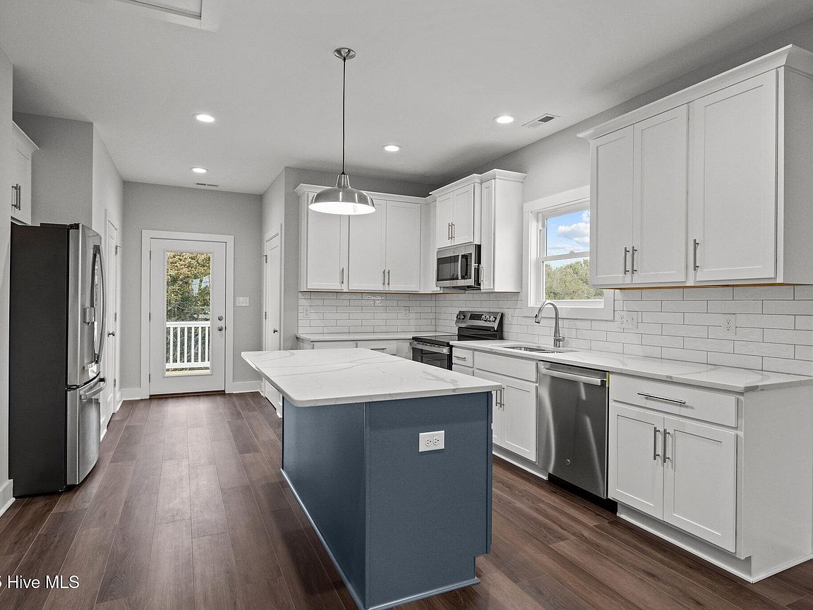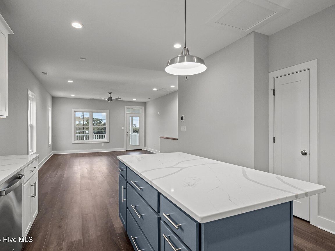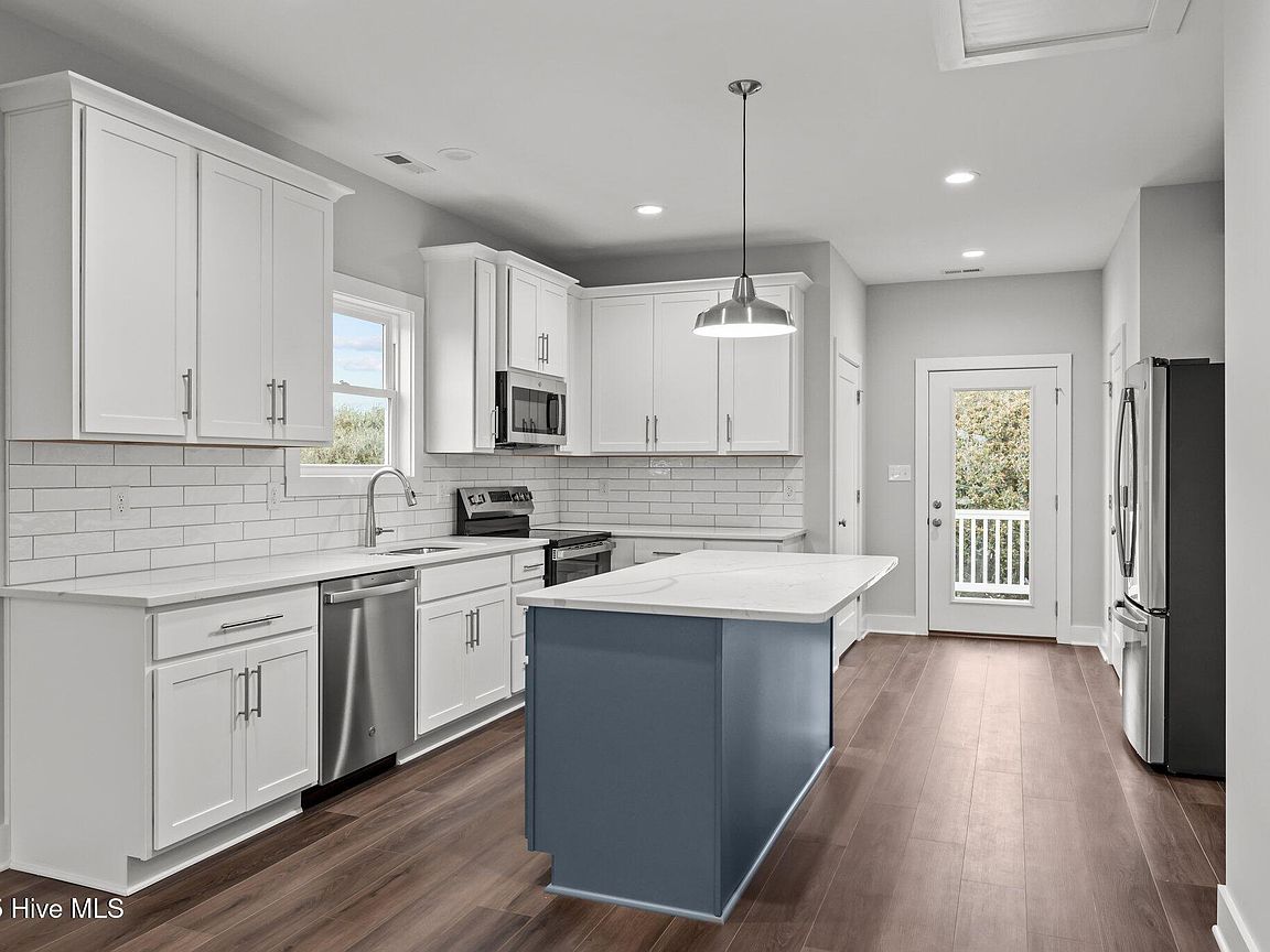 Three levels of modern coastal living Private garage with half bath and mini split perfect for a game room, storage, or flexible living space Third floor showcases an open-concept living area with covered front deck, dining space, and a sleek kitchen featuring quartz countertops and stainless steel appliances. Convenient laundry area and rear deck for additional outdoor enjoyment. Second floor includes an owner's suite, guest bedroom, additional room ideal for an office or flex space, plus covered front and back decks for relaxation and entertaining. High-end finishes throughout, including LVP flooring, quartz surfaces, and new washer and dryer. Both units (A&B) sit on a 0.38-acre lot in the heart of Salter Path, offering easy access to area beaches, dining, and coastal attractions With its modern design, durable coastal construction, and versatile layout, this half duplex provides an incredible opportunity for investment, personal use, or a combination of both. Listing is for unit B (EastSide). Property would have to be divided and given new parcel numbers if not sold together.