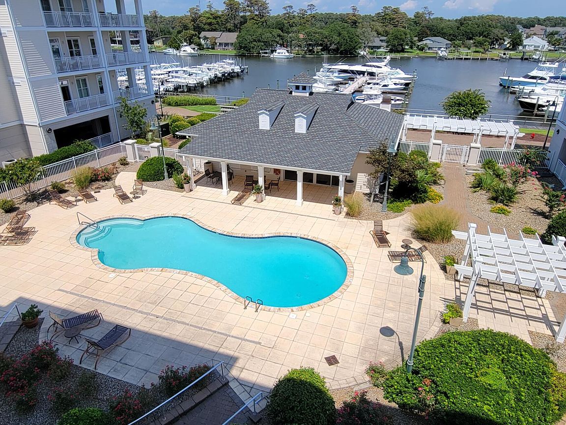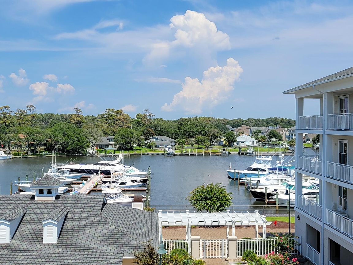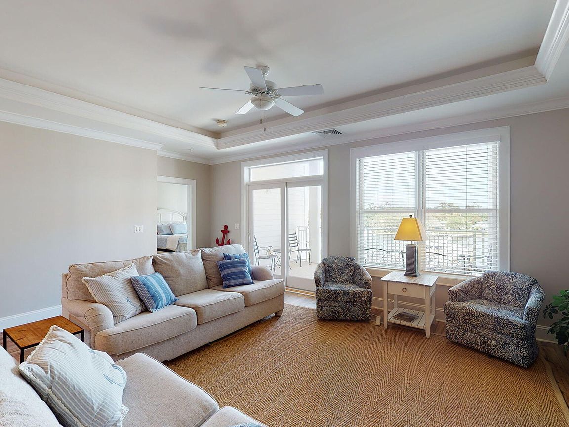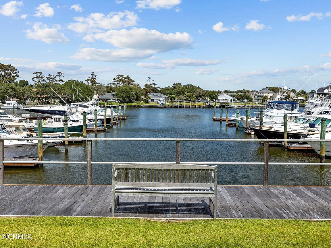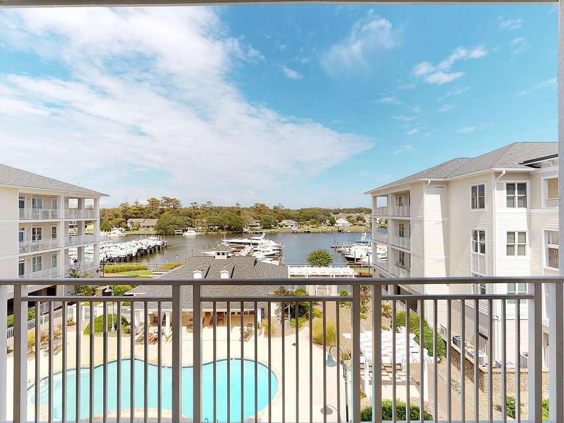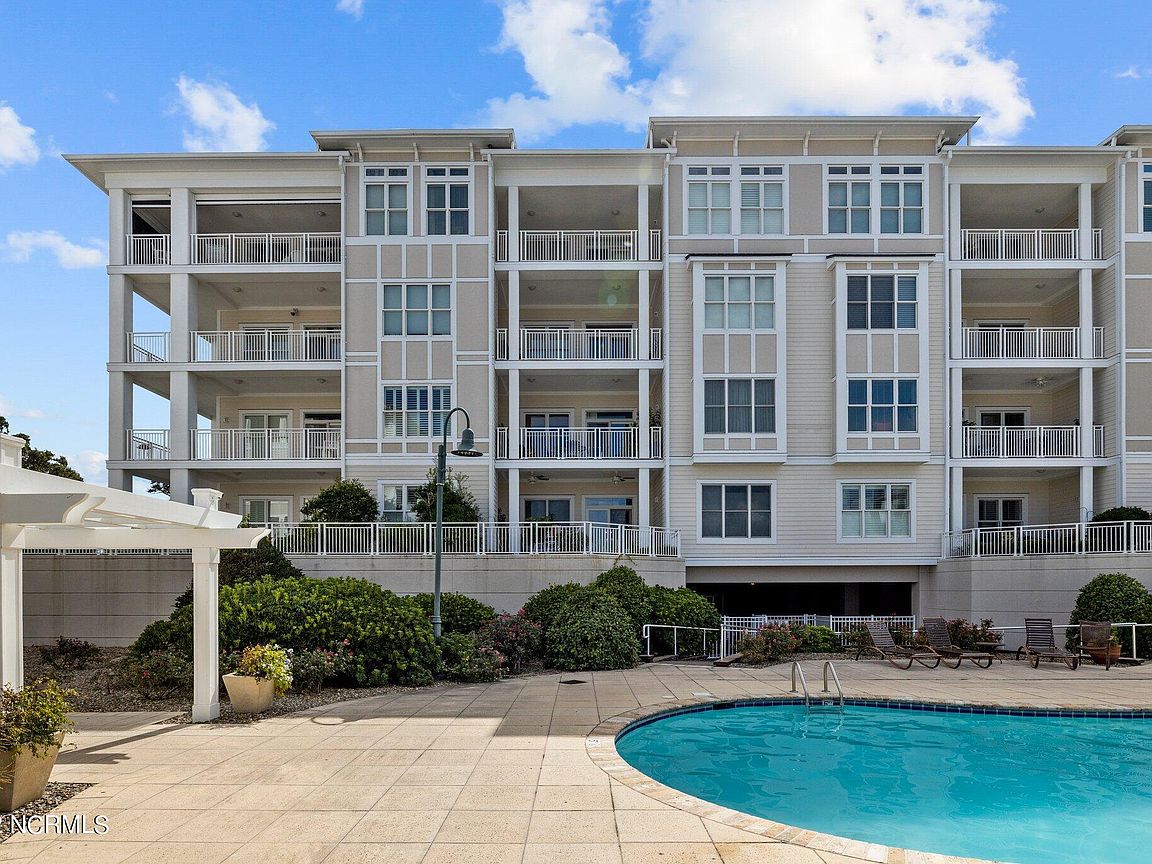 Spacious 3rd floor furnished condo with fabulous view of the pool, water, and marina. Gorgeous view of Bogue Sound from your front door. Lighted trey ceiling in the master bedroom suite. Granite counters, stainless-steel appliances, and abundance of cabinets in this kitchen. 2nd bedroom also has a private bathroom for family and friends' convenience. Custom features abound throughout this condo located in a gated community. Outside storage in located underneath building. Complex is close to shopping, schools, and beaches.
