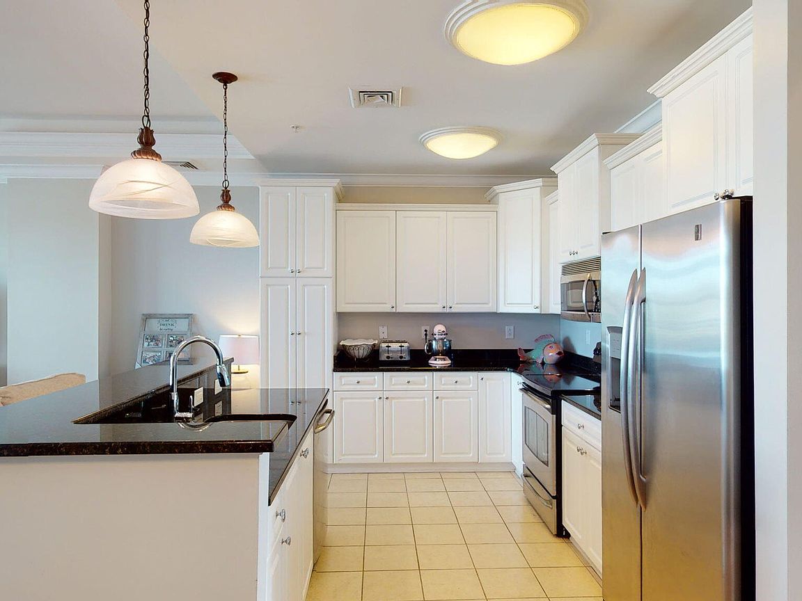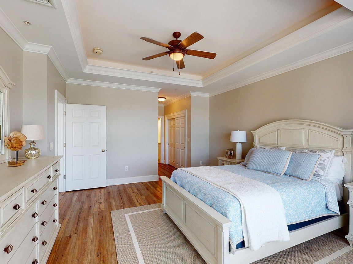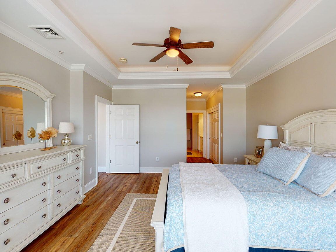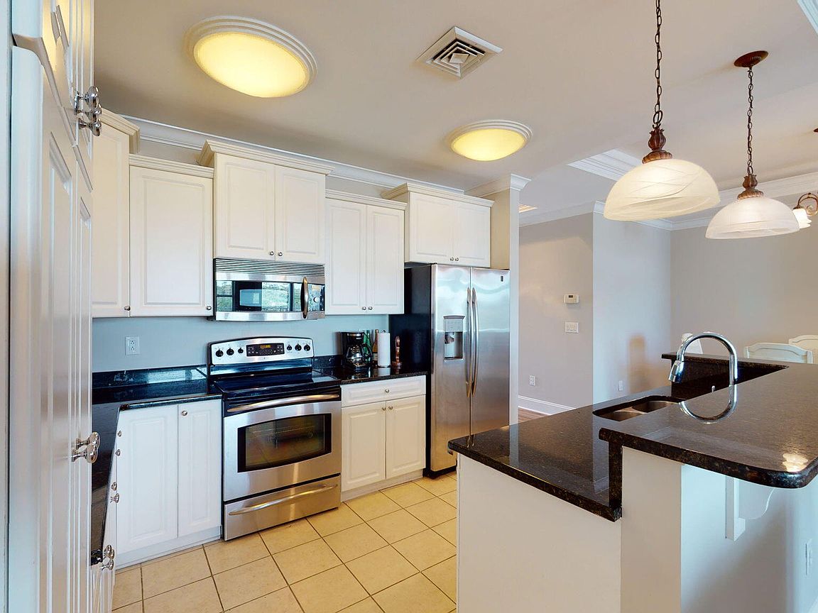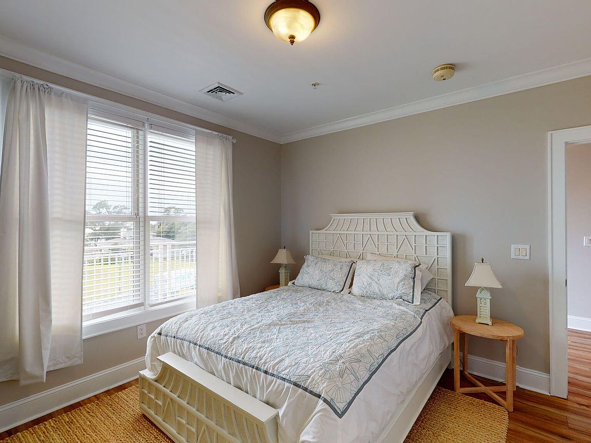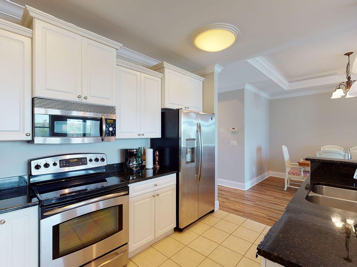 Spacious 3rd floor furnished condo with fabulous view of the pool, water, and marina. Gorgeous view of Bogue Sound from your front door. Lighted trey ceiling in the master bedroom suite. Granite counters, stainless-steel appliances, and abundance of cabinets in this kitchen. 2nd bedroom also has a private bathroom for family and friends' convenience. Custom features abound throughout this condo located in a gated community. Outside storage in located underneath building. Complex is close to shopping, schools, and beaches.