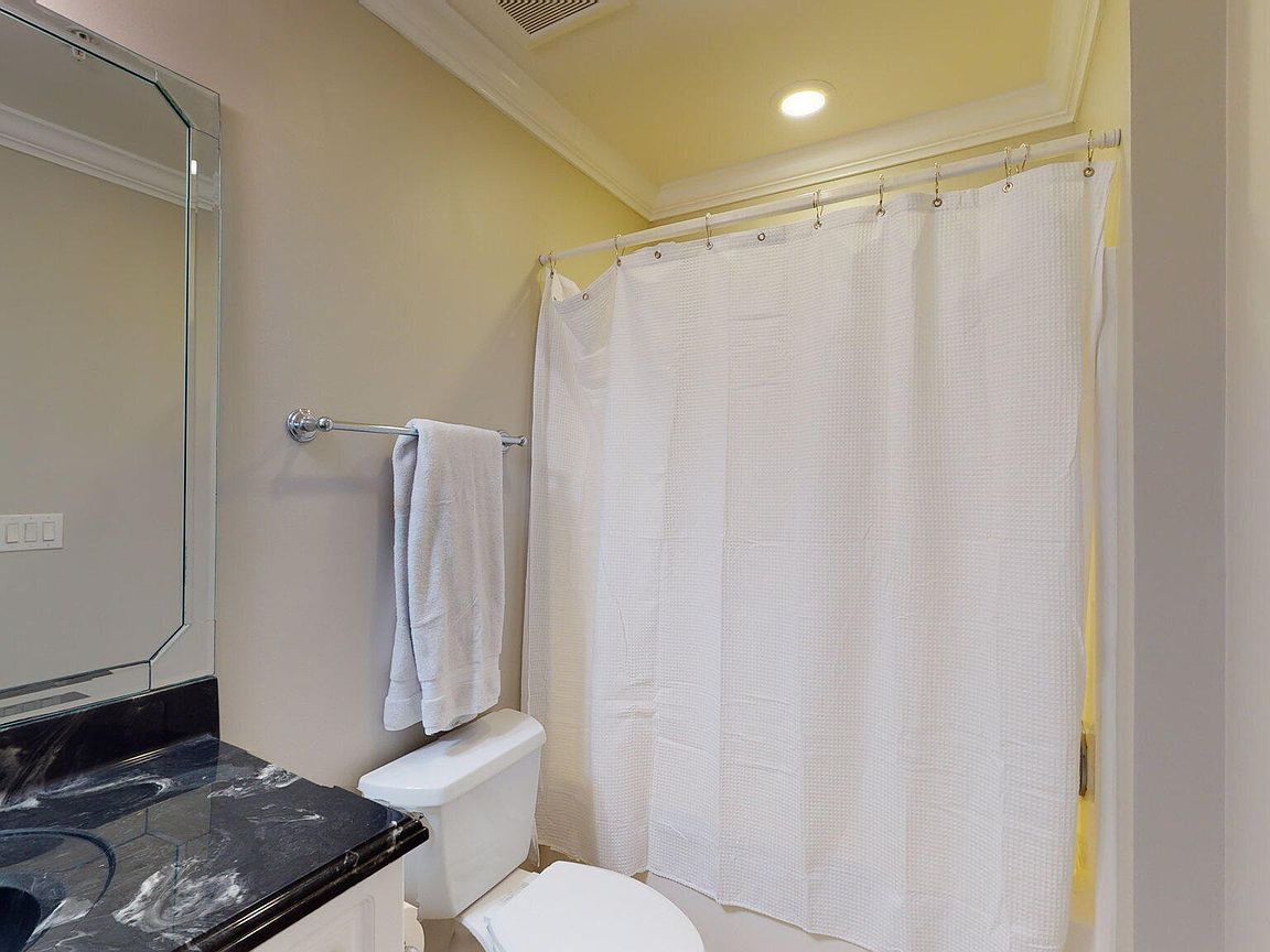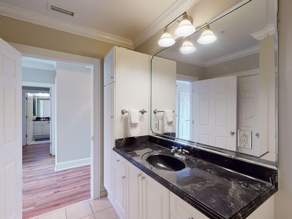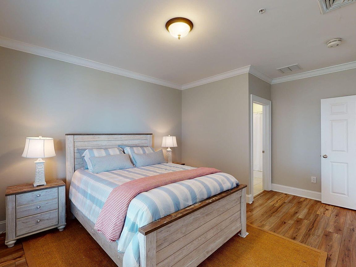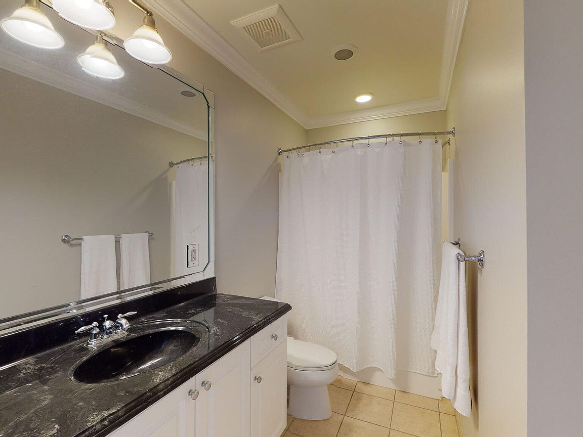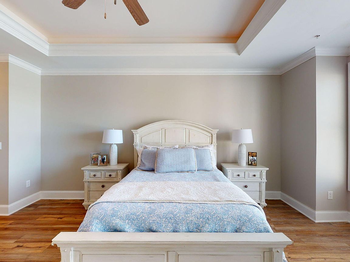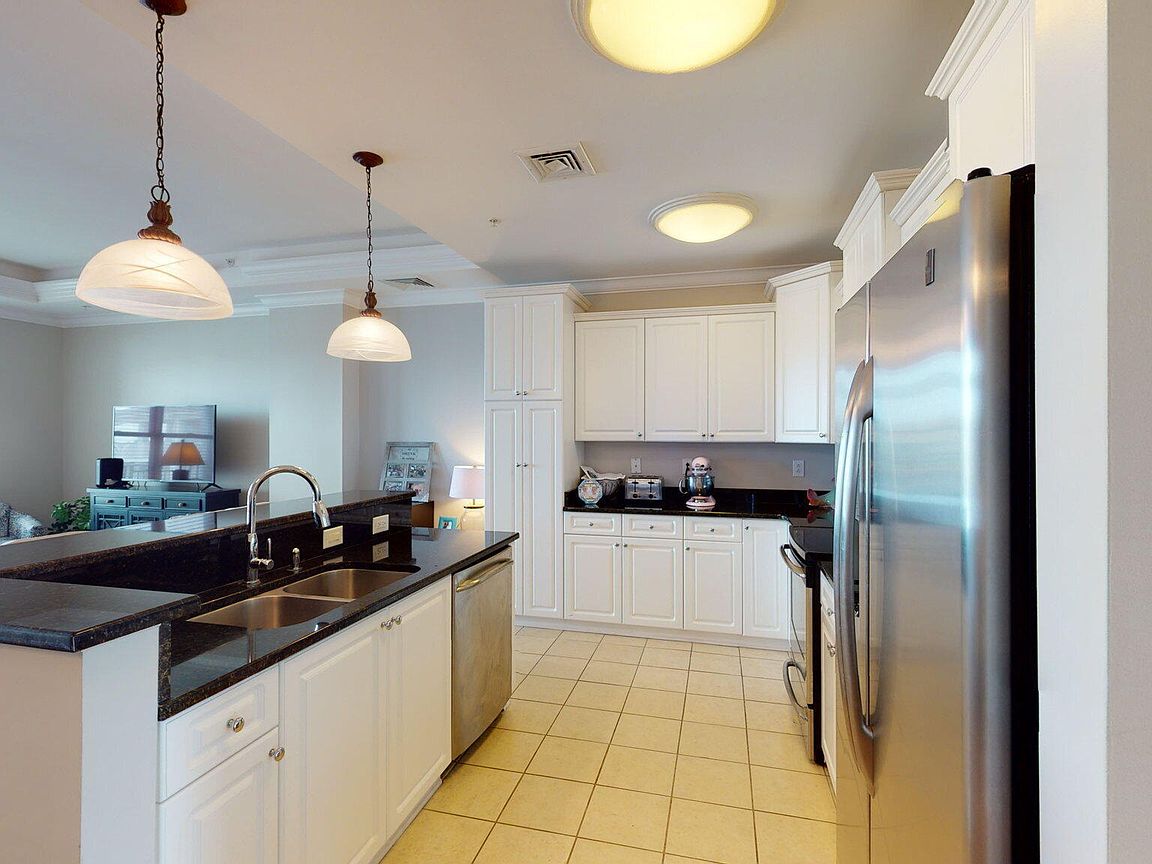 Spacious 3rd floor furnished condo with fabulous view of the pool, water, and marina. Gorgeous view of Bogue Sound from your front door. Lighted trey ceiling in the master bedroom suite. Granite counters, stainless-steel appliances, and abundance of cabinets in this kitchen. 2nd bedroom also has a private bathroom for family and friends' convenience. Custom features abound throughout this condo located in a gated community. Outside storage in located underneath building. Complex is close to shopping, schools, and beaches.