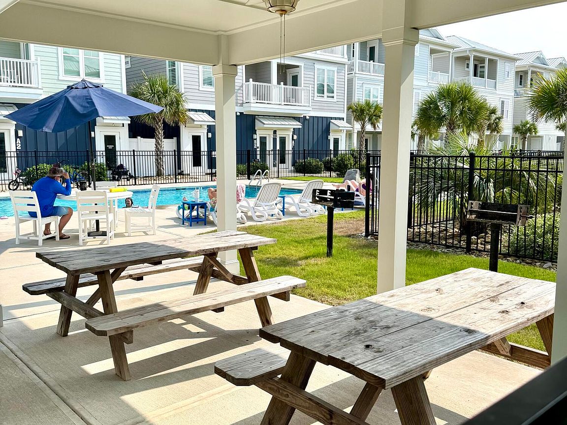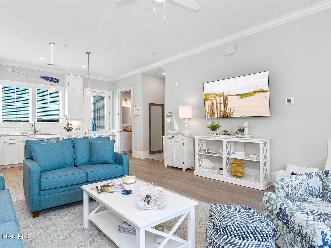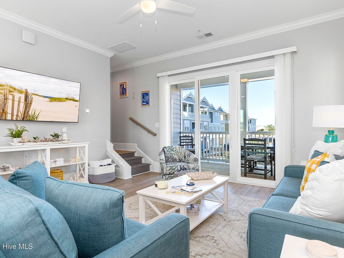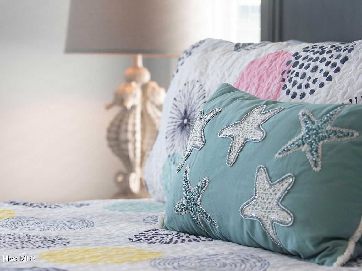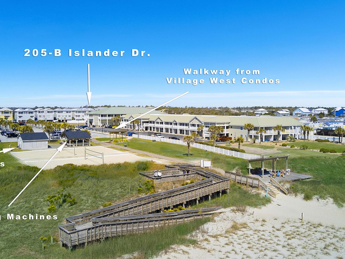 Better than new! Rarely available condo at Emerald Isle's newest mixed-use community, Village West. Unit D, one of only eleven condos, overlooks the community pool and offers peek-a-boo views of the ocean, & has three covered porches. Designed with over 1300 heated square feet, 2 bedrooms, 2.5 baths, AND a flex room. Built in 2021, this condo has all the newer build touches with 10' ceilings on the main living level, spacious kitchen with granite tops, tile backsplashes, large dining island, extra large moldings, LVP flooring, stainless appliances & more. The bedroom & flex room level feels roomy yet cozy with 9' ceiling height. The owner has expanded on the original construction with beaded board wainscotting in the stairwells. Furnished right down to the silverware (seller has a limited exclusion list). Village West offers a private outdoor community pool, bathhouse, grilling area, communal open green space, gated parking lot with 2 assigned parking spaces. Retail shopping, dining, and drinks right in your backyard. Footsteps to the boarded ocean access at Western Ocean Regional Access. Bike & pedestrian path access is only a block away. Lots of family fun awaits at the nearby Salty Pirate Water Park, the go-karts, and putt-putt. Village West businesses just footsteps away include Kostas Pizza, Beachside Emerald Isle, Velvet Anchor Anchor Bottle Shop, and Mountain Brook Vineyards. Hurry! This beauty will not last long.