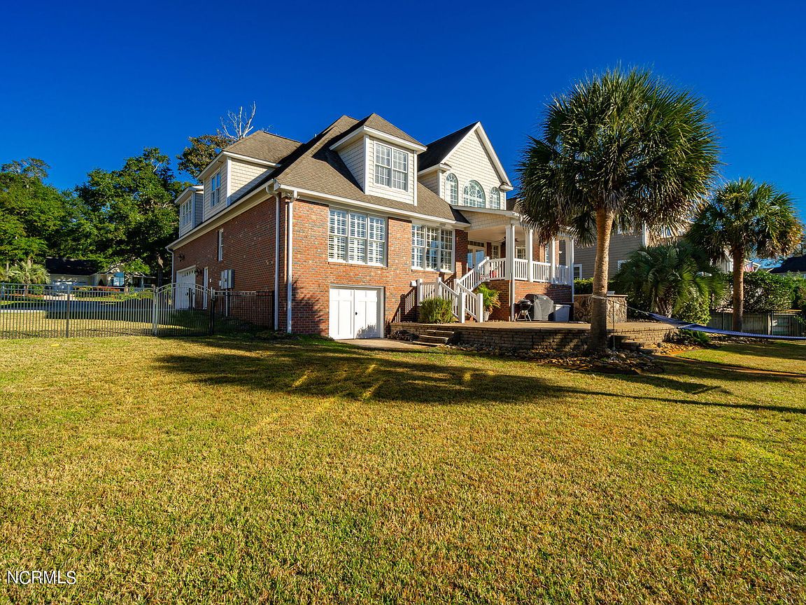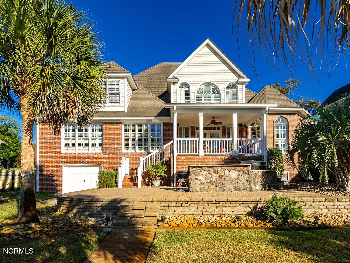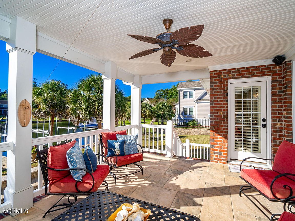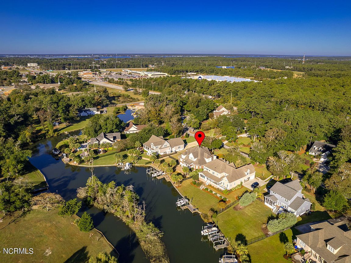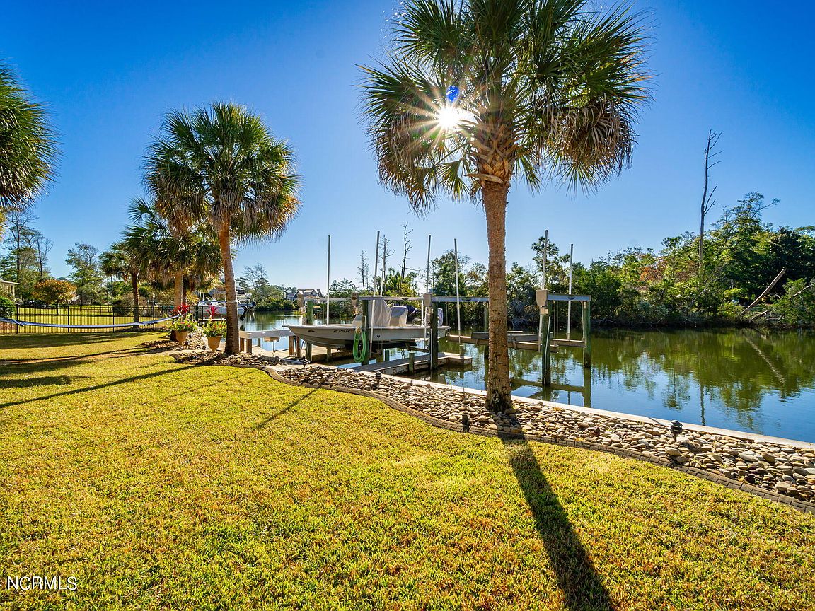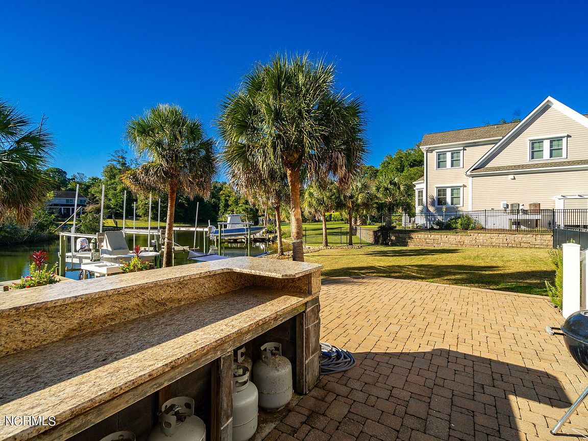 Waterfront brick home with over 4,600 SF of living space and 2 boat lifts, conveniently located in the heart of Cape Carteret. This home features 4 bedrooms, 2 bonus rooms, and 3.5 baths, showcasing custom quality throughout, including exotic hardwoods with inlays, cabinetry, and tile. The primary bedroom is on the first floor, complete with a large en-suite and a walk-in closet. It's located just off one of the two entertaining spaces on the first floor, providing easy access to the covered porch and down to the brick patio. The patio is perfect for outdoor dining, featuring a cooking area overlooking the canal. Hop on the boat for a quick ride to the Swansboro waterfront or fish the ICW. The second level includes three bedrooms, two baths, and two additional bonus rooms. There is a basement for extra storage, which can also be used as a tackle room or workshop (950 SF not included). Come experience all that 209 Bayside Drive has to offer today!