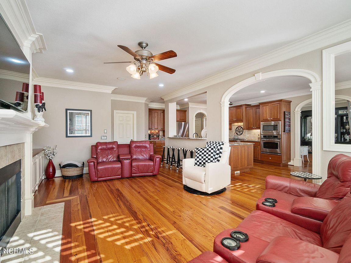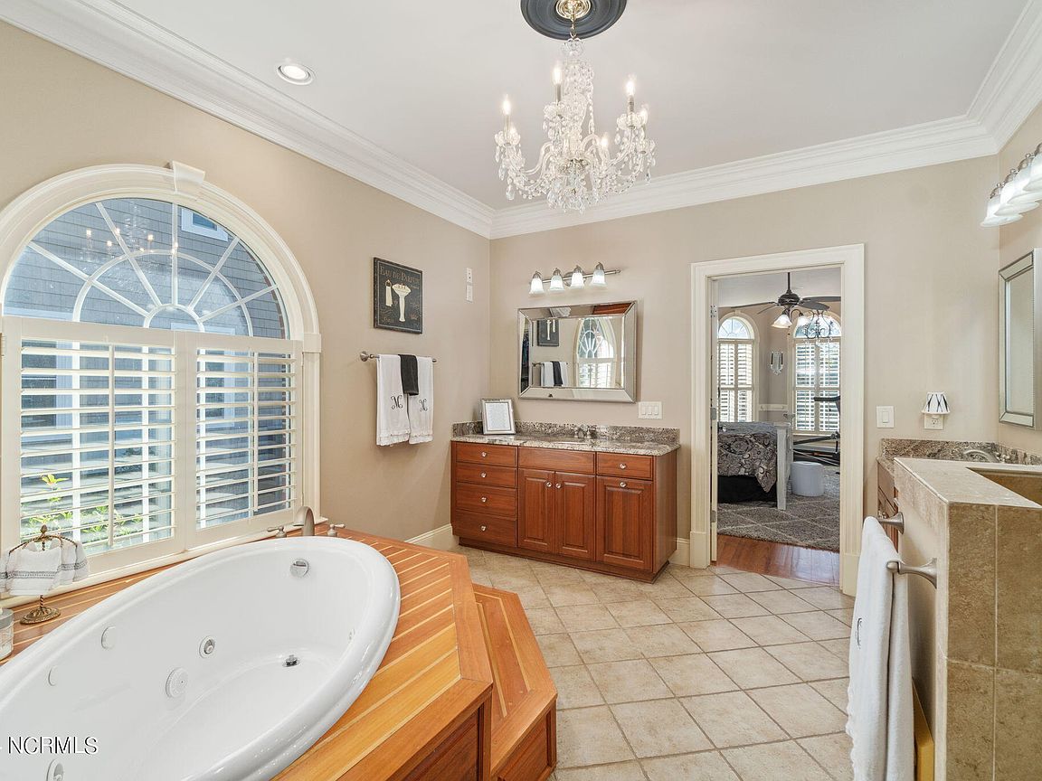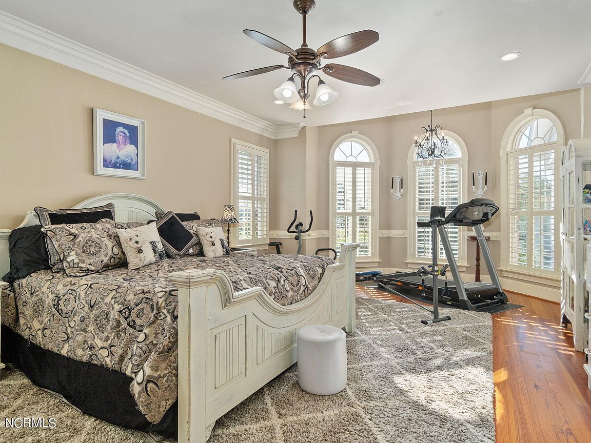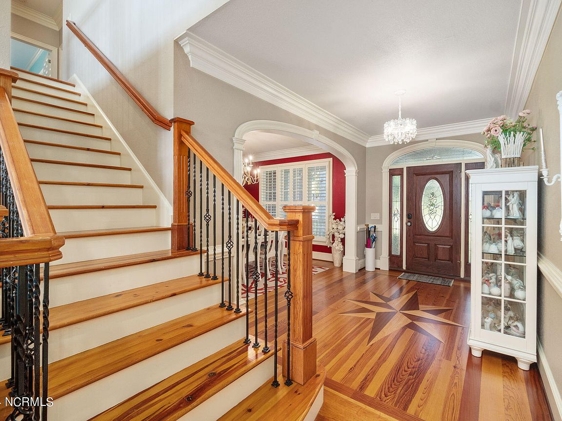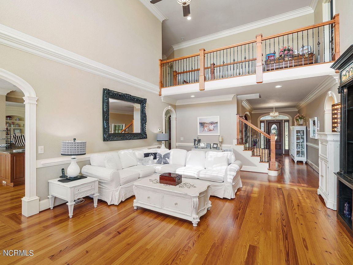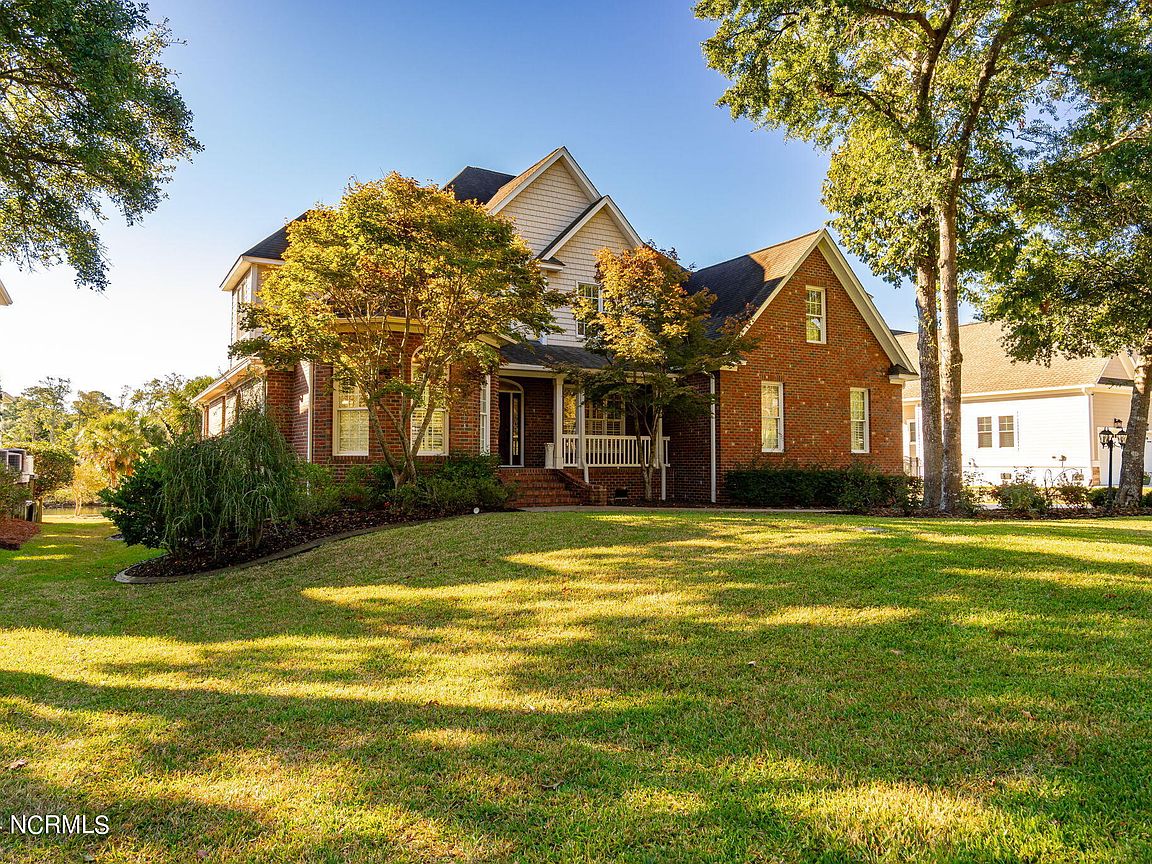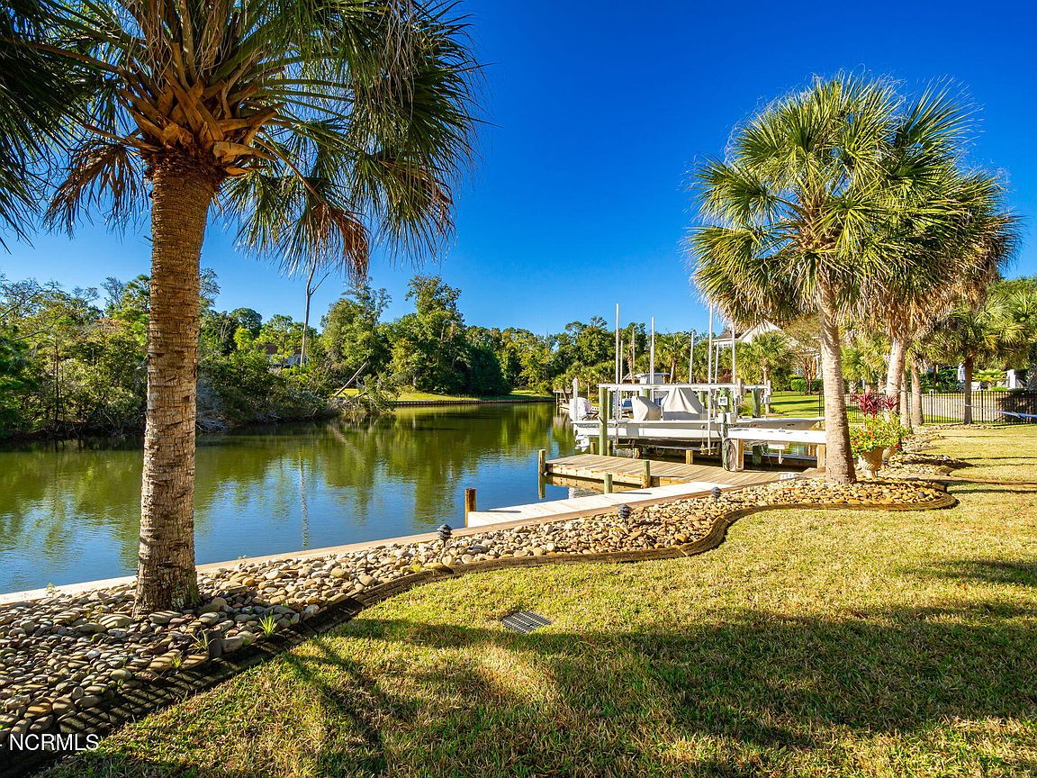 Waterfront brick home with over 4,600 SF of living space and 2 boat lifts, conveniently located in the heart of Cape Carteret. This home features 4 bedrooms, 2 bonus rooms, and 3.5 baths, showcasing custom quality throughout, including exotic hardwoods with inlays, cabinetry, and tile. The primary bedroom is on the first floor, complete with a large en-suite and a walk-in closet. It's located just off one of the two entertaining spaces on the first floor, providing easy access to the covered porch and down to the brick patio. The patio is perfect for outdoor dining, featuring a cooking area overlooking the canal. Hop on the boat for a quick ride to the Swansboro waterfront or fish the ICW. The second level includes three bedrooms, two baths, and two additional bonus rooms. There is a basement for extra storage, which can also be used as a tackle room or workshop (950 SF not included). Come experience all that 209 Bayside Drive has to offer today!