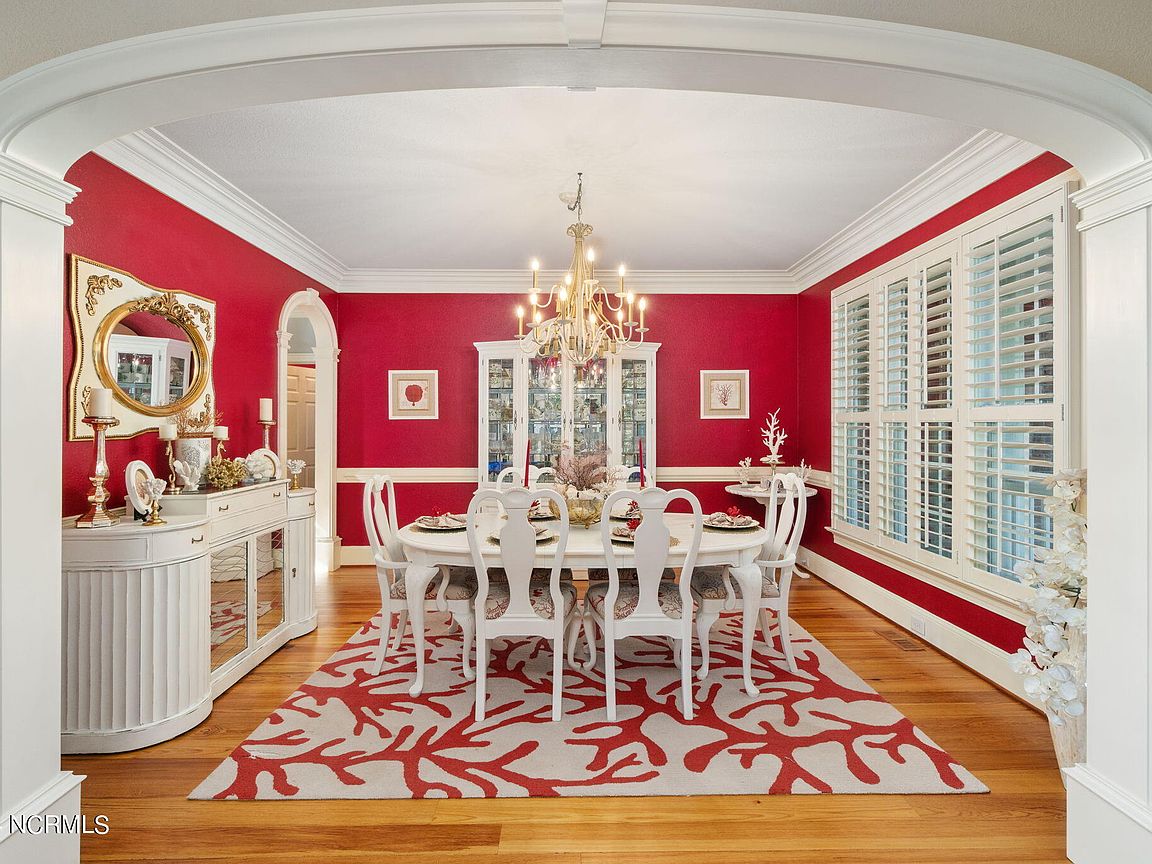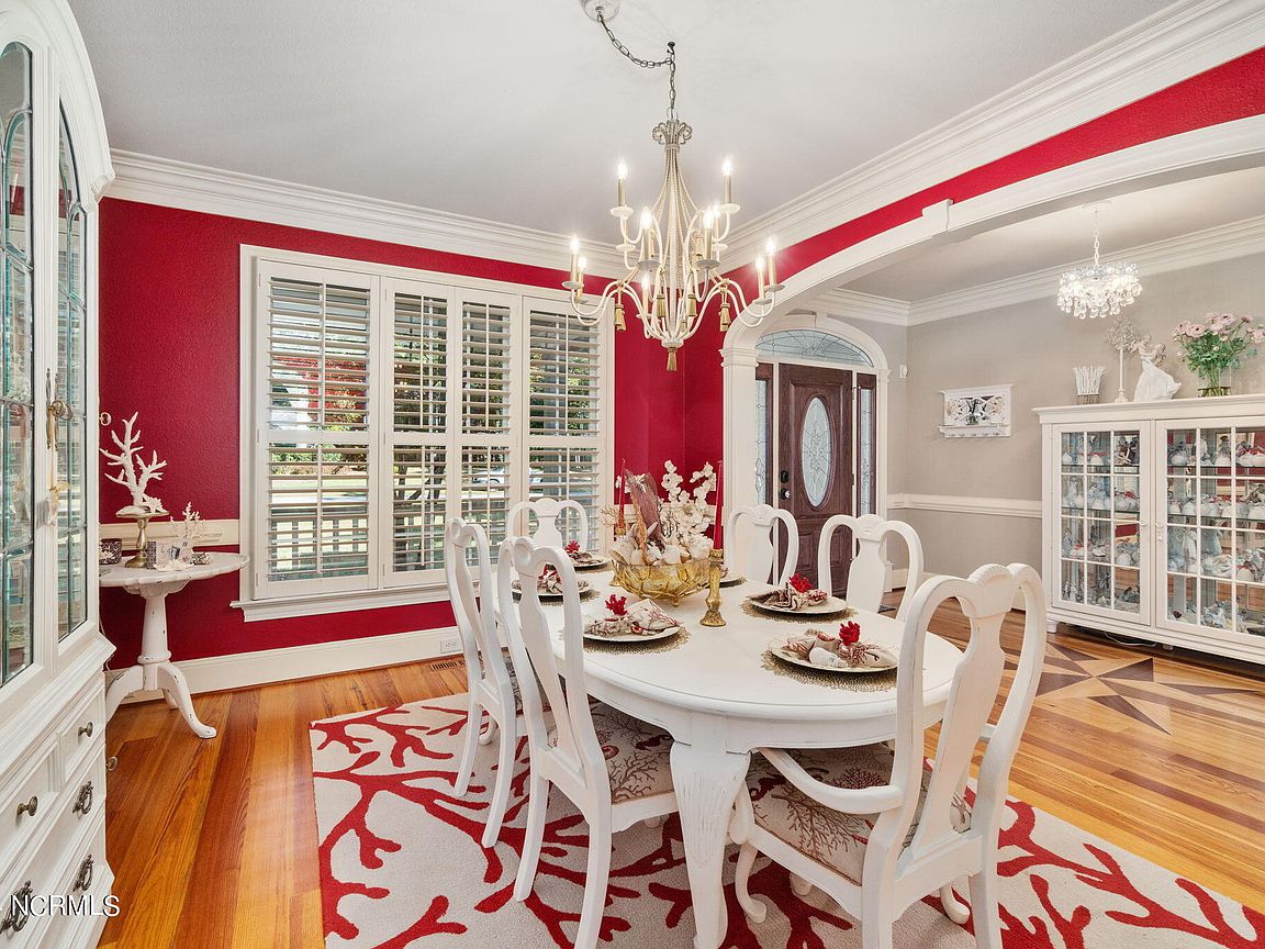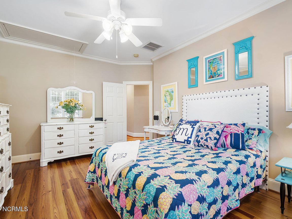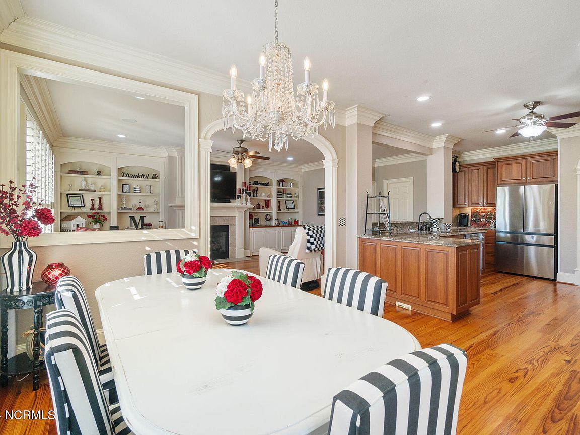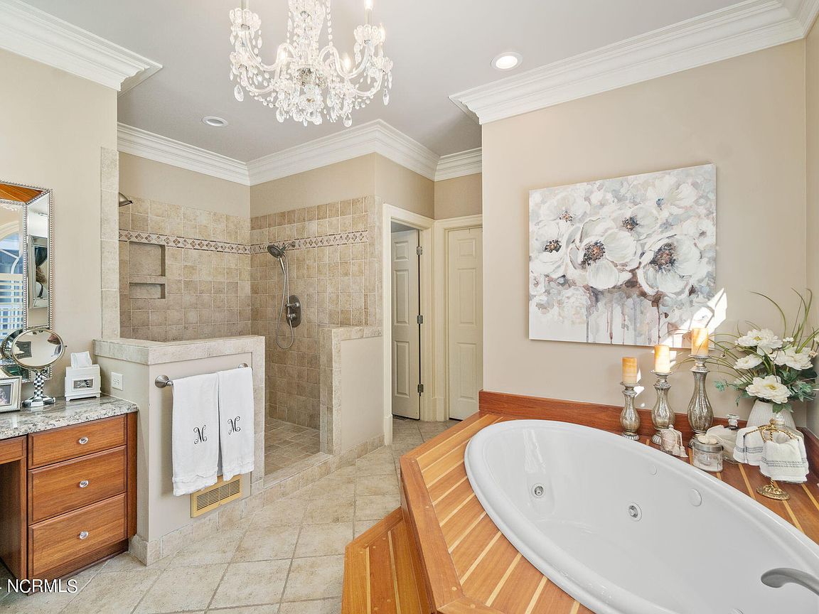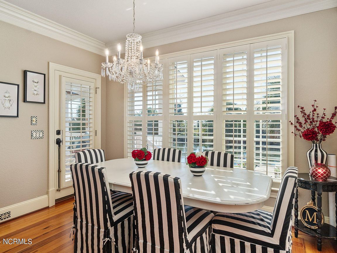 Waterfront brick home with over 4,600 SF of living space and 2 boat lifts, conveniently located in the heart of Cape Carteret. This home features 4 bedrooms, 2 bonus rooms, and 3.5 baths, showcasing custom quality throughout, including exotic hardwoods with inlays, cabinetry, and tile. The primary bedroom is on the first floor, complete with a large en-suite and a walk-in closet. It's located just off one of the two entertaining spaces on the first floor, providing easy access to the covered porch and down to the brick patio. The patio is perfect for outdoor dining, featuring a cooking area overlooking the canal. Hop on the boat for a quick ride to the Swansboro waterfront or fish the ICW. The second level includes three bedrooms, two baths, and two additional bonus rooms. There is a basement for extra storage, which can also be used as a tackle room or workshop (950 SF not included). Come experience all that 209 Bayside Drive has to offer today!