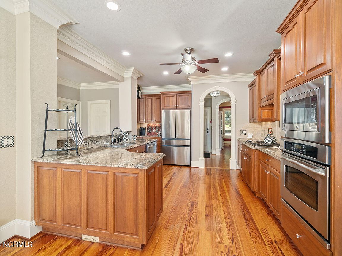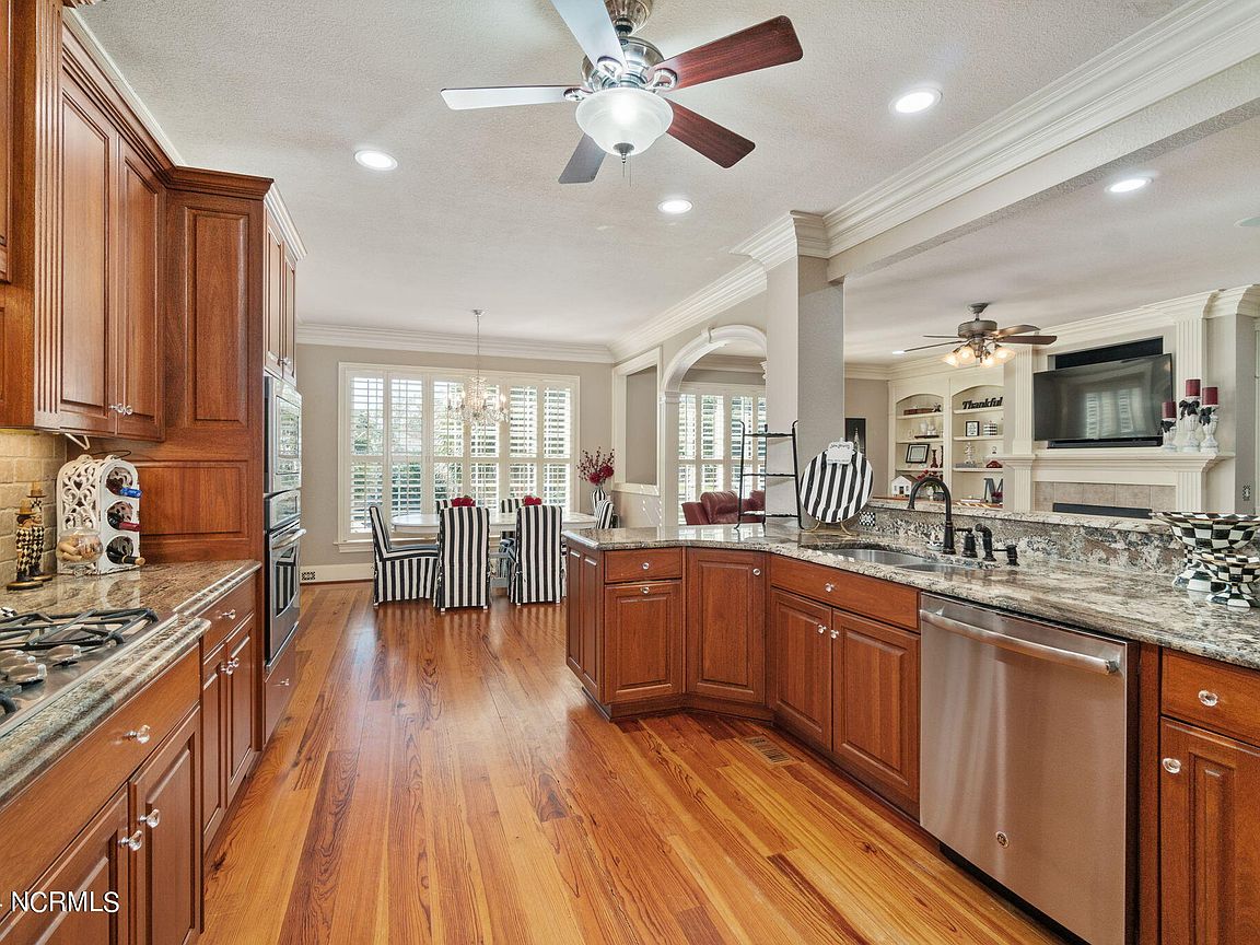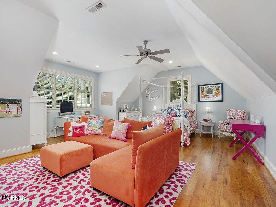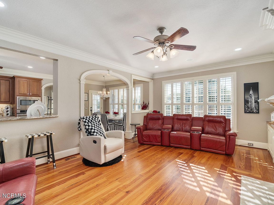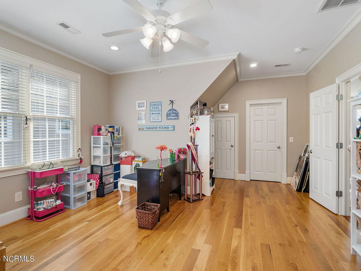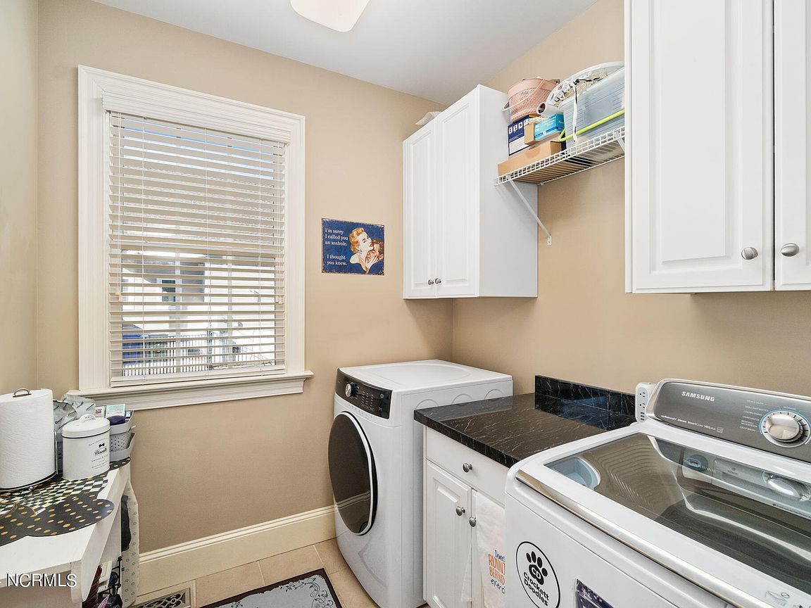 Waterfront brick home with over 4,600 SF of living space and 2 boat lifts, conveniently located in the heart of Cape Carteret. This home features 4 bedrooms, 2 bonus rooms, and 3.5 baths, showcasing custom quality throughout, including exotic hardwoods with inlays, cabinetry, and tile. The primary bedroom is on the first floor, complete with a large en-suite and a walk-in closet. It's located just off one of the two entertaining spaces on the first floor, providing easy access to the covered porch and down to the brick patio. The patio is perfect for outdoor dining, featuring a cooking area overlooking the canal. Hop on the boat for a quick ride to the Swansboro waterfront or fish the ICW. The second level includes three bedrooms, two baths, and two additional bonus rooms. There is a basement for extra storage, which can also be used as a tackle room or workshop (950 SF not included). Come experience all that 209 Bayside Drive has to offer today!