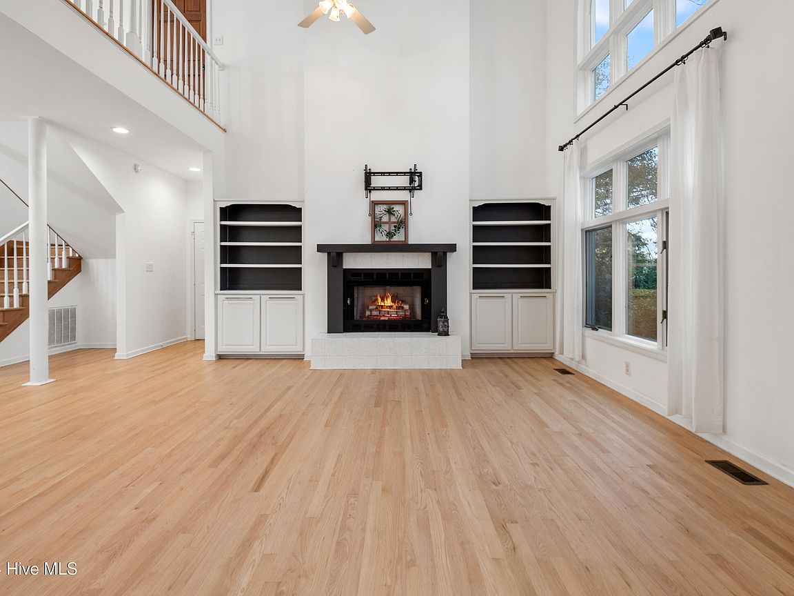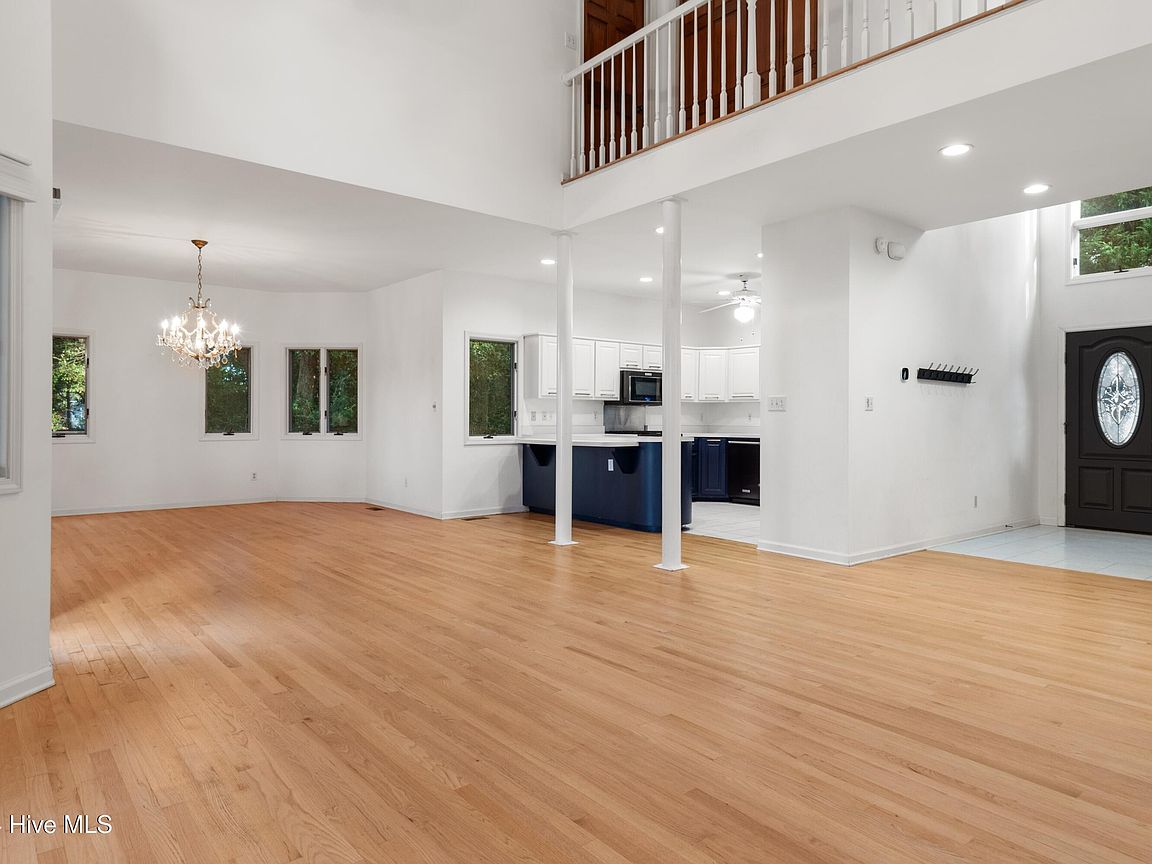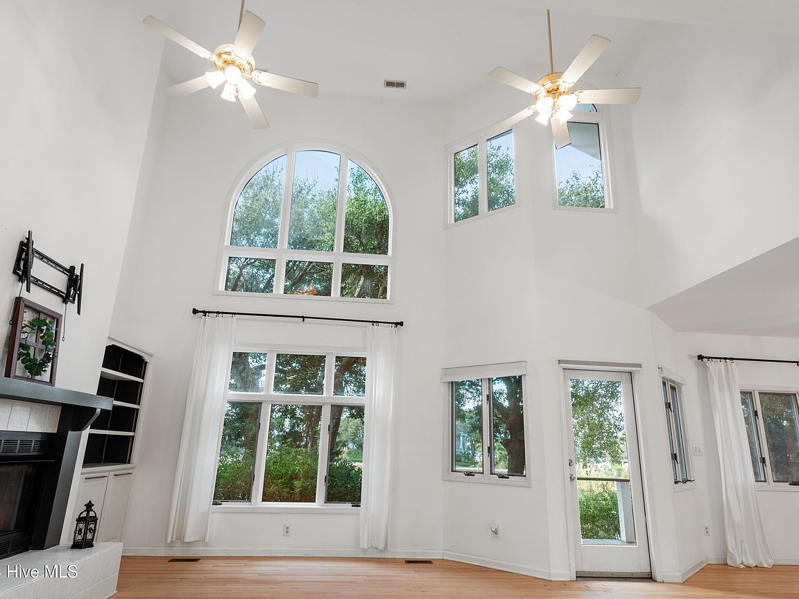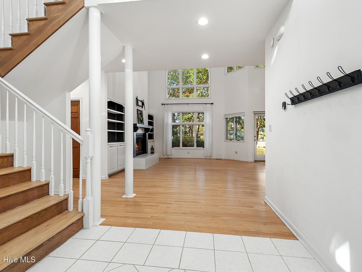 The open-concept kitchen is a chef's dream, featuring stainless steel appliances, a gas-operating stove, and plenty of counter space for meal preparation and entertaining. The living room is bright and airy, with large windows that invite in natural light and offer stunning views of the water. A cozy fireplace adds charm and warmth to the space, making it perfect for gathering with family and friends.